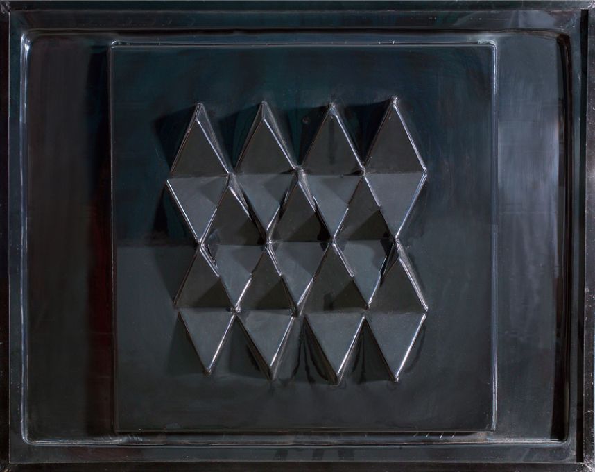 Plastic and geometric assemblage, 1970. Vacuum-packed plastic, 70x70x10 cm